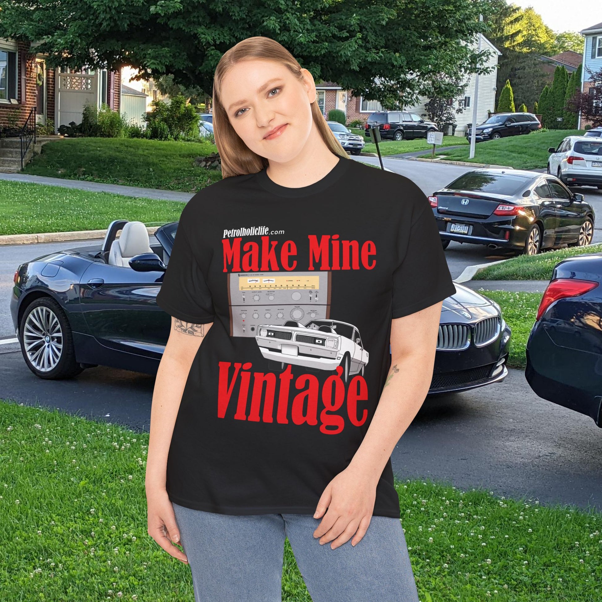 '70 Swinger and Make Mine Vintage Sherwood Stereo - Unisex Heavy Cotton Tee