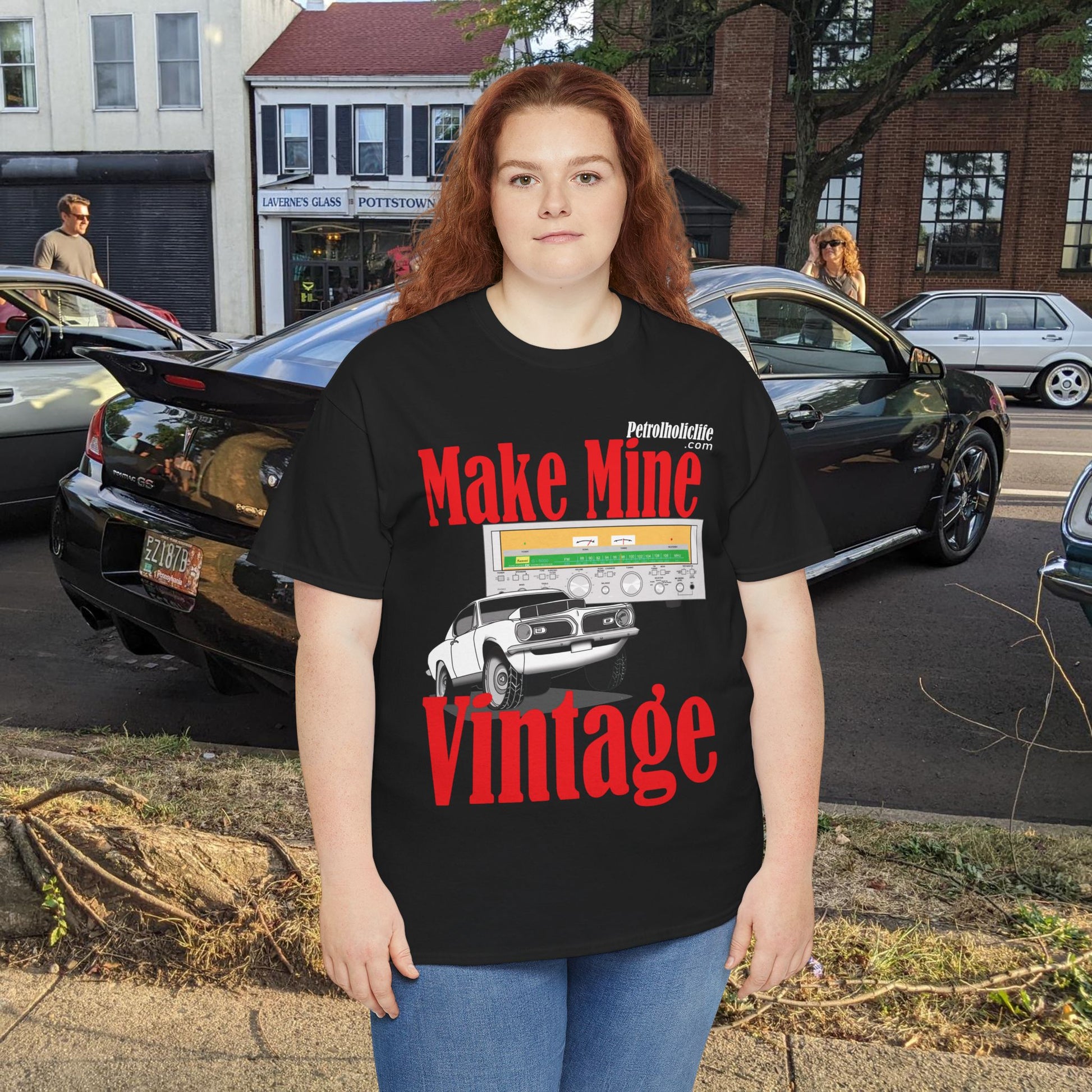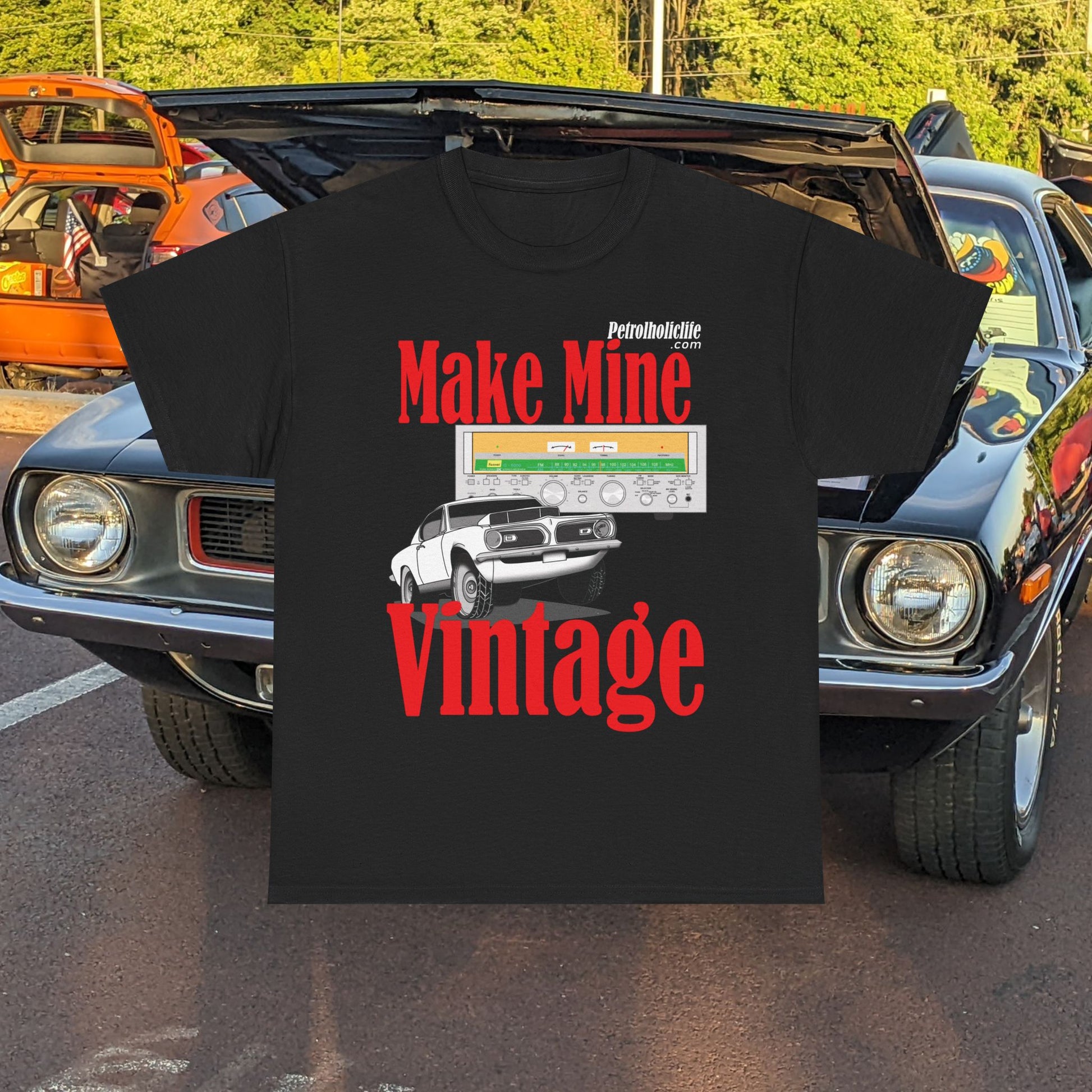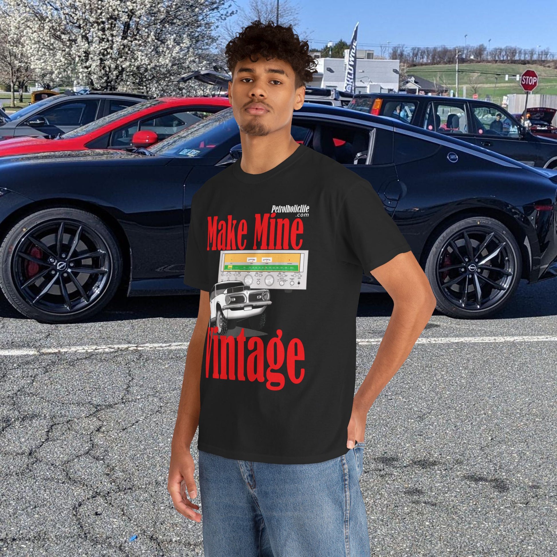 Make Mine Vintage Hem! Cuda and Sansui Receiver - Unisex Heavy Cotton Tee
